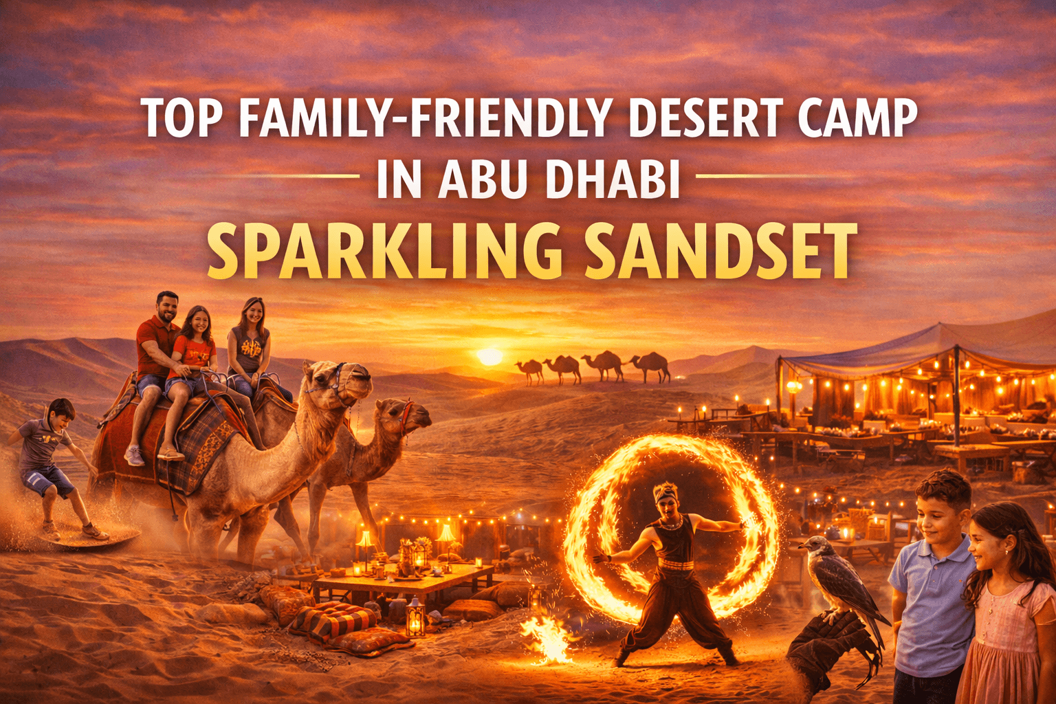 Experience luxury in Abu Dhabi at Sparkling Sandset - Khayal Al Sahra Camp, hosting everything from corporate gatherings to full-fledged desert weddings.